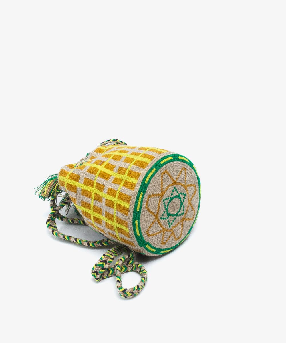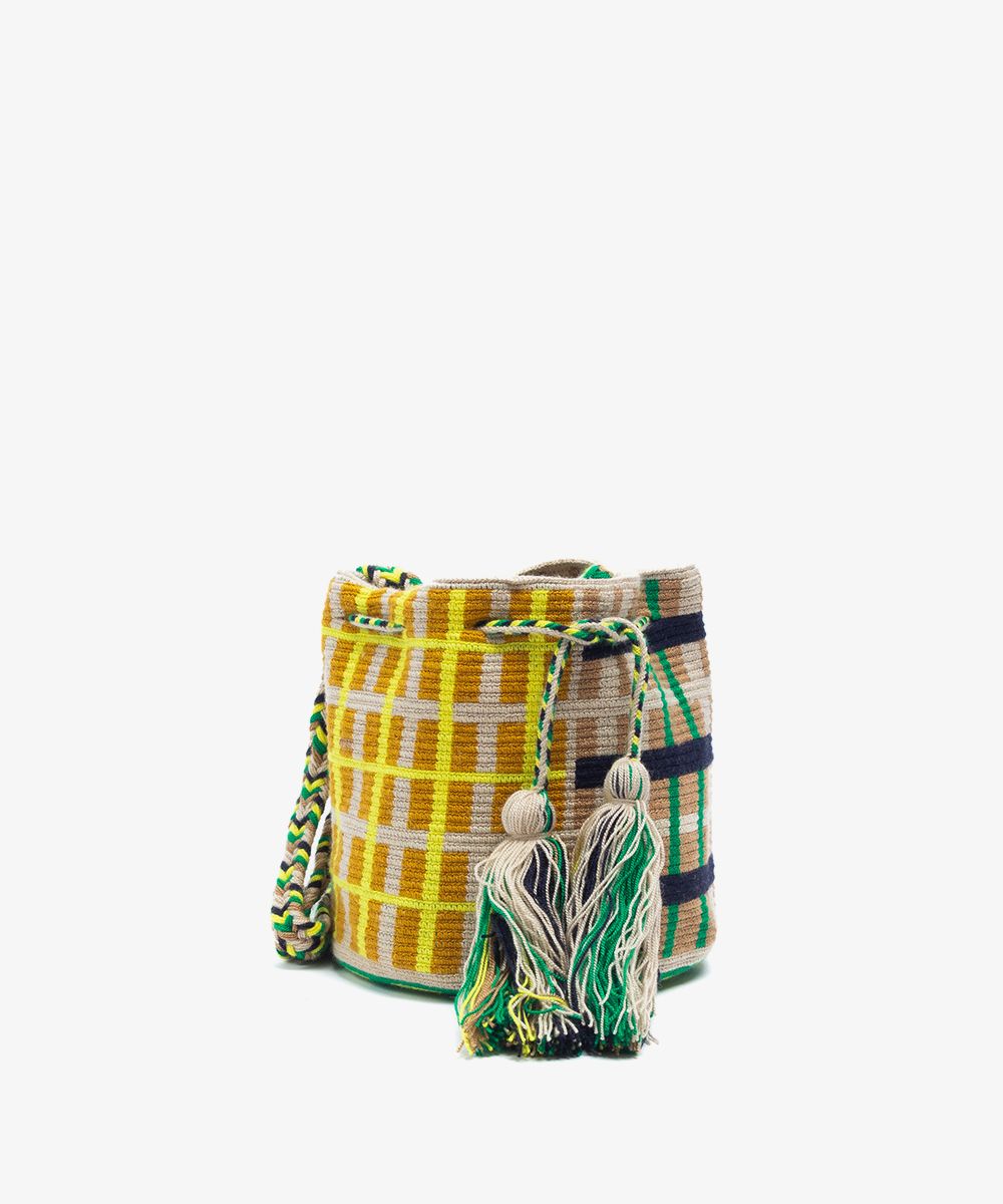 Gracias a las manos de cientos de mujeres Wayuu en Colombia y a los diseñadores de GUANÁBANA en Madrid, nuestro bolso clásico se presenta en una versión más pequeña. Tejido a mano por artesanas en Colombia, los colores y patrones de este bolso, y su asa larga, lo convierten en un imprescindible que puedes usar en cualquiera ocasión. Revisa su base y admira las diferencias que trae cada uno de ellos. Este bolso cierra con dos pompones tejidos y nuestro sello en bronce con el leitmotiv de GUANABANA: BE POSITIVE.
