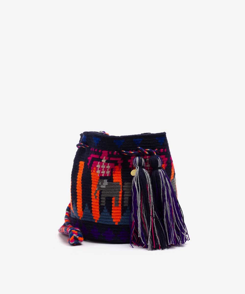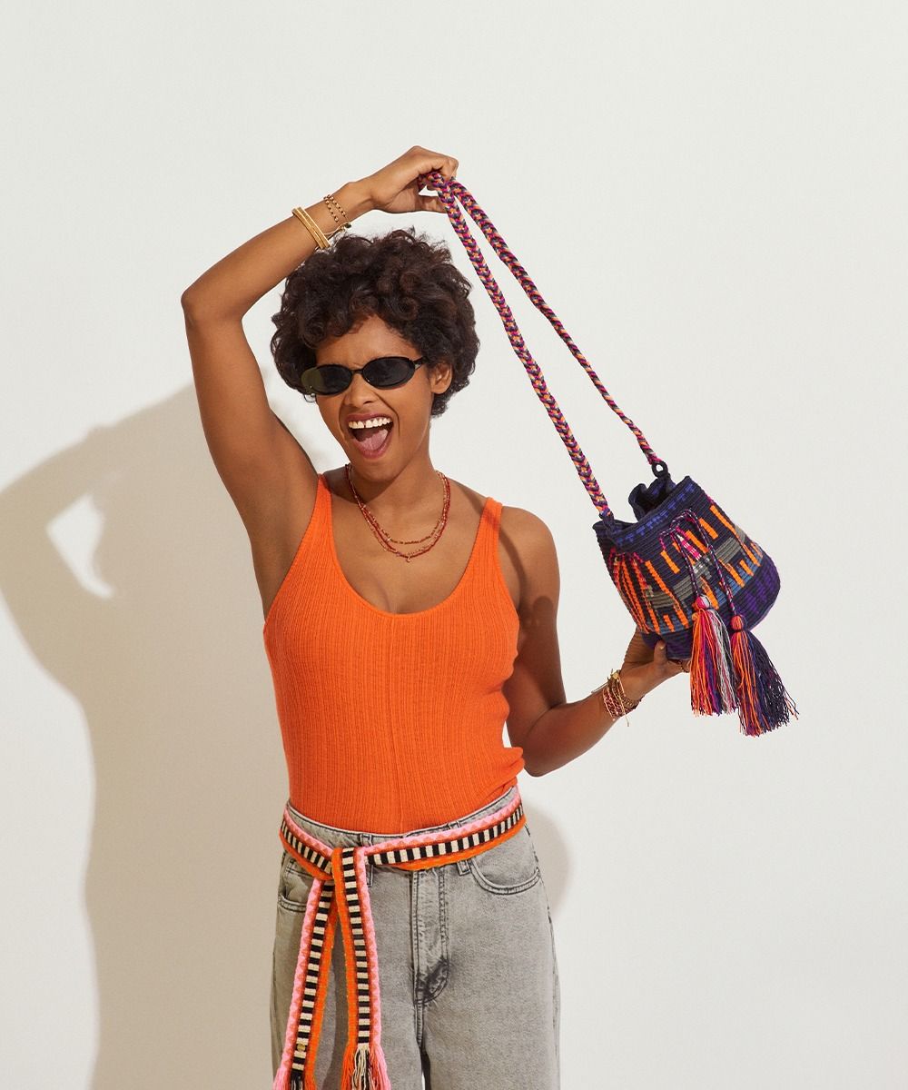 Gracias a las manos de cientos de mujeres Wayuu en Colombia y a los diseñadores de GUANÁBANA en Madrid, nuestro bolso clásico se presenta en una versión más pequeña. Tejido a mano por artesanas en Colombia, los colores y patrones de este bolso, y su asa larga, lo convierten en un imprescindible que puedes usar en cualquiera ocasión. Revisa su base y admira las diferencias que trae cada uno de ellos. Este bolso cierra con dos pompones tejidos y nuestro sello en bronce con el leitmotiv de GUANABANA: BE POSITIVE.