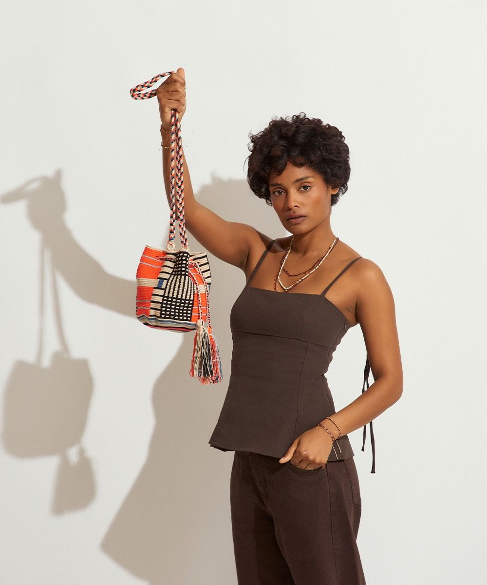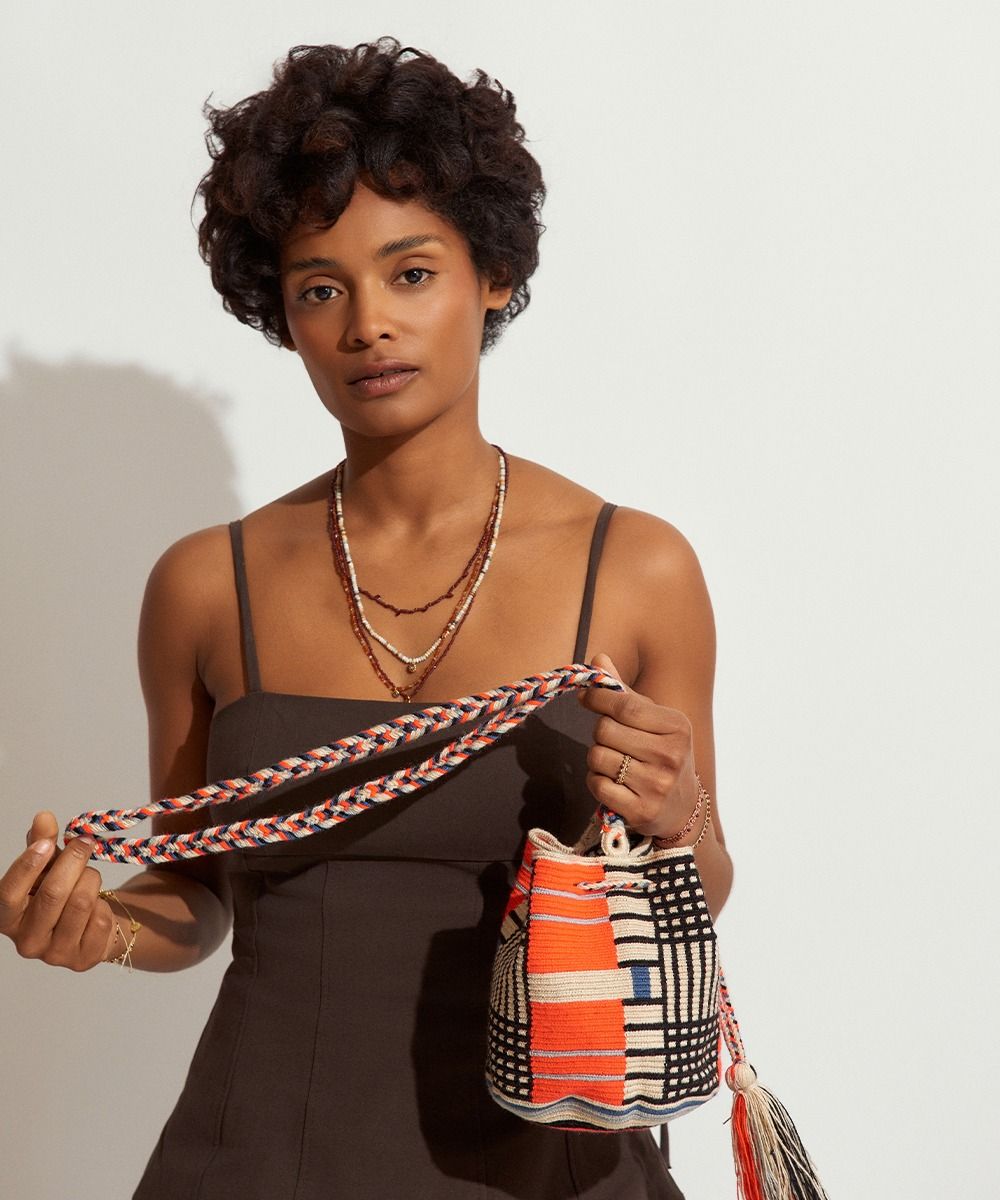 Gracias a las manos de cientos de mujeres Wayuu en Colombia y a los diseñadores de GUANÁBANA en Madrid, nuestro bolso clásico se presenta en una versión más pequeña. Tejido a mano por artesanas en Colombia, los colores y patrones de este bolso, y su asa larga, lo convierten en un imprescindible que puedes usar en cualquiera ocasión. Revisa su base y admira las diferencias que trae cada uno de ellos. Este bolso cierra con dos pompones tejidos y nuestro sello en bronce con el leitmotiv de GUANABANA: BE POSITIVE.