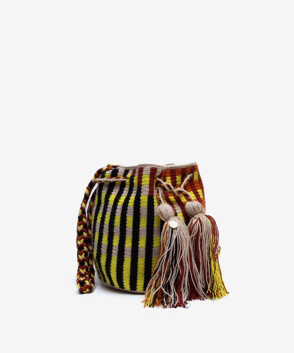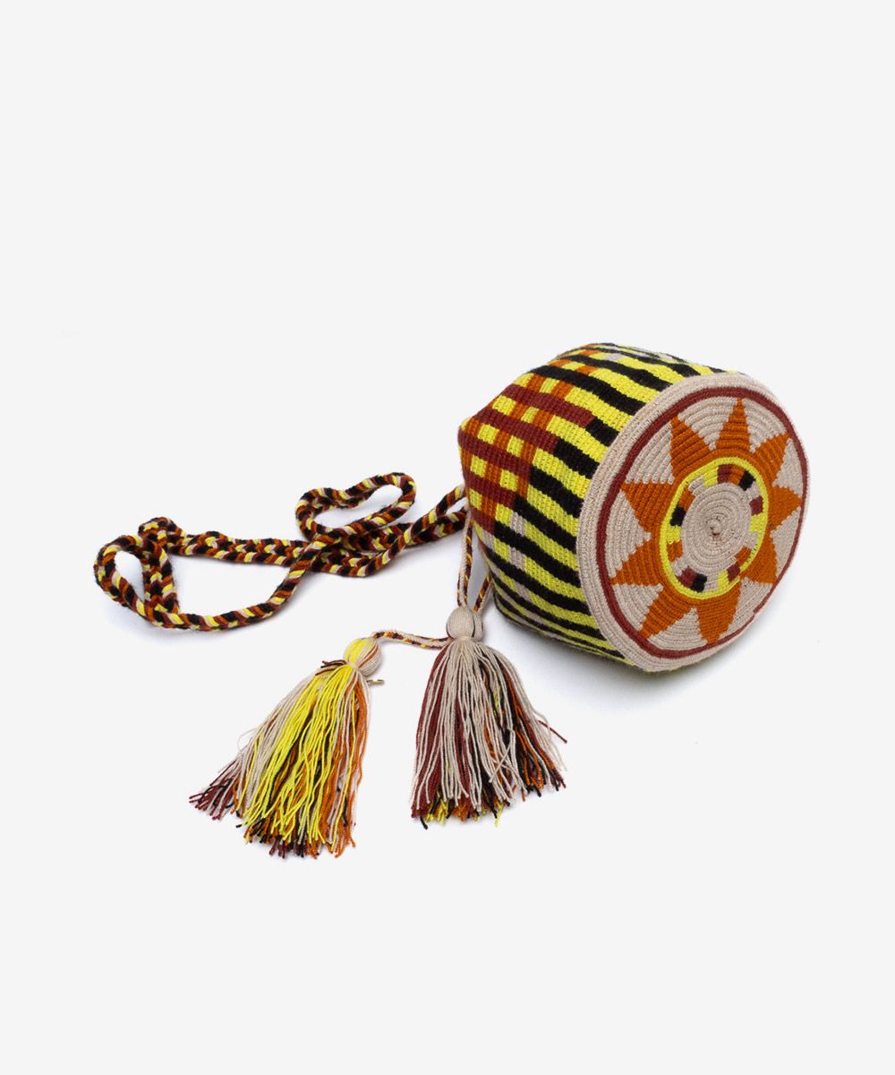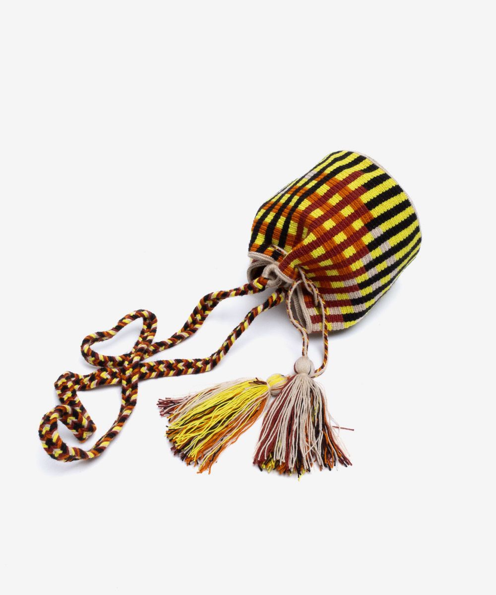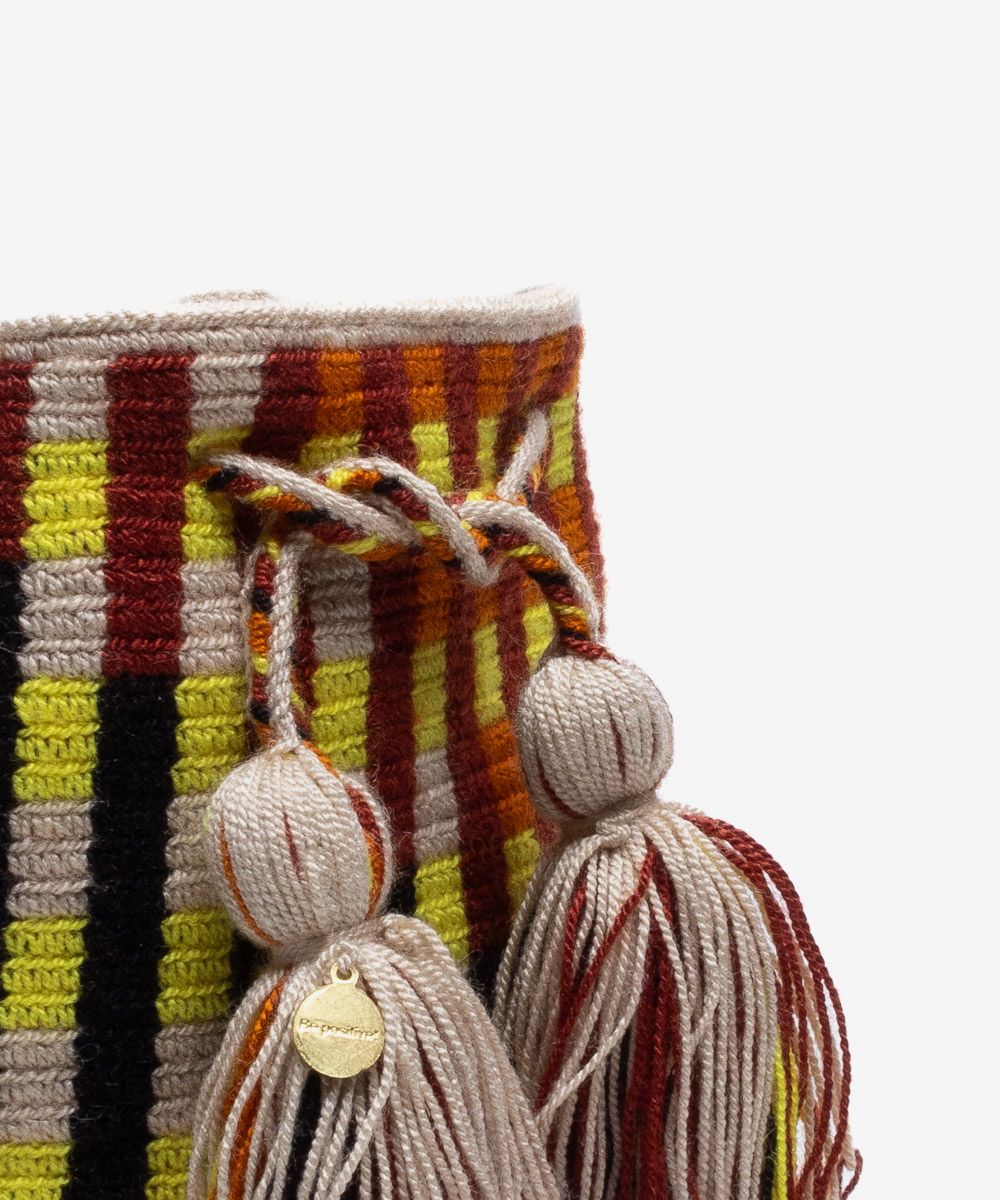 Gracias a las manos de cientos de mujeres Wayuu en Colombia y a los diseñadores de GUANÁBANA en Madrid, nuestro bolso clásico se presenta en una versión más pequeña. Tejido a mano por artesanas en Colombia, los colores y patrones de este bolso, y su asa larga, lo convierten en un imprescindible que puedes usar en cualquiera ocasión. Revisa su base y admira las diferencias que trae cada uno de ellos. Este bolso cierra con dos pompones tejidos y nuestro sello en bronce con el leitmotiv de GUANABANA: BE POSITIVE.