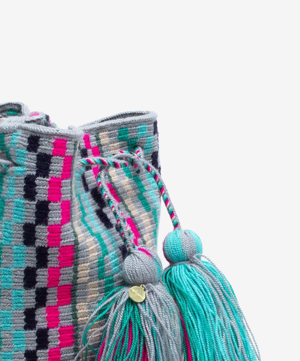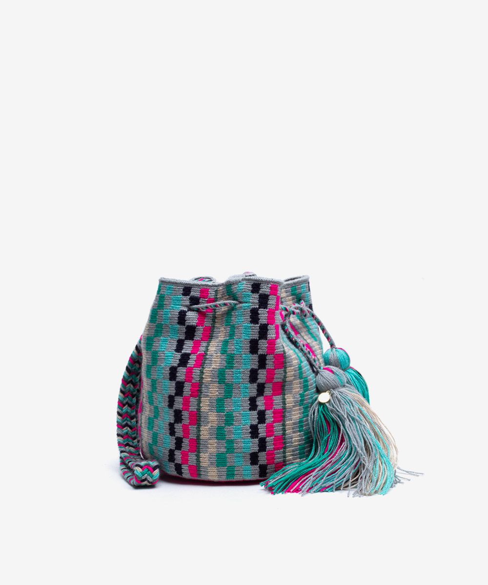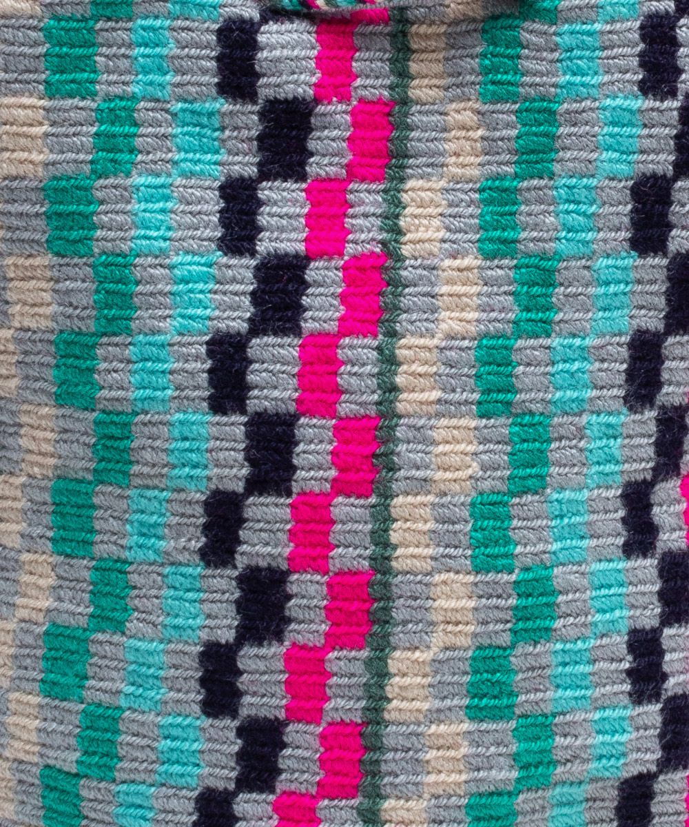 Experimenta la esencia de GUANABANA con nuestro exclusivo bolso para el día a día diseñado en Madrid y cuidadosamente tejido a mano en Colombia. Inspirada en la tradicional mochila Wayuu colombiana tejida a mano, esta versión más pequeña incorpora estampados vanguardistas, colores vibrantes y cautivadoras formas geométricas. El asa larga trenzada añade un toque de estilo a este accesorio funcional, diseñado para complementar todas tus aventuras.