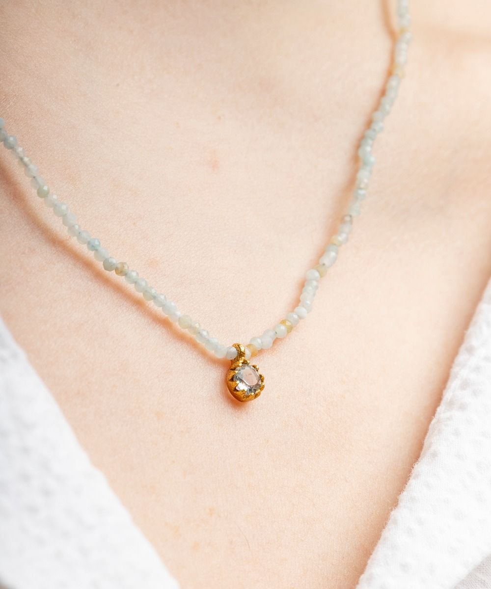 Delicate and feminine, a complement with an ethnic touch that will finish off any look, both in summer and winter. This exclusive Guanábana design features a pendant that includes a semi-precious stone, giving the necklace an elegant touch. Our tip: you can combine necklaces of different lengths to create your own outfit. Our tip: you can combine necklaces of different lengths to create your own outfit.