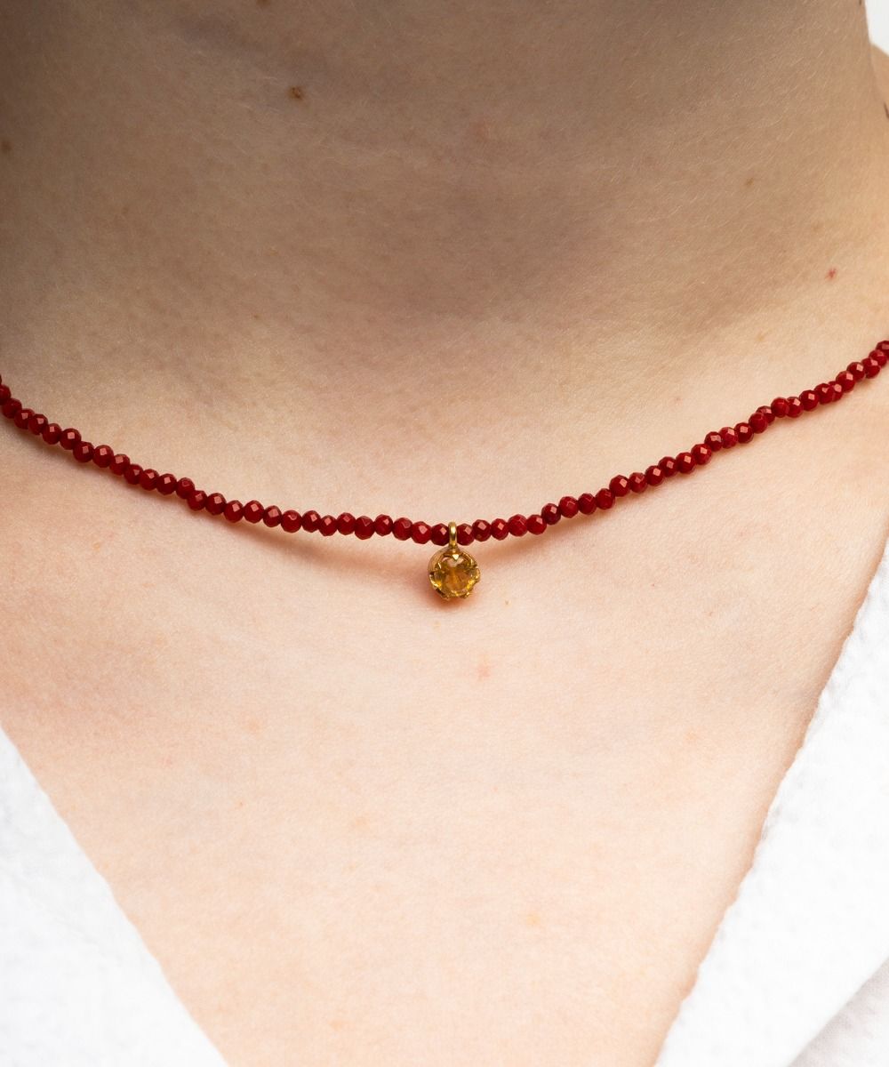 Delicate and feminine, a complement with an ethnic touch that will finish off any look, both in summer and winter. This exclusive Guanábana design features a pendant that includes a semi-precious stone, giving the necklace an elegant touch. Our tip: you can combine necklaces of different lengths to create your own outfit. Our tip: you can combine necklaces of different lengths to create your own outfit.