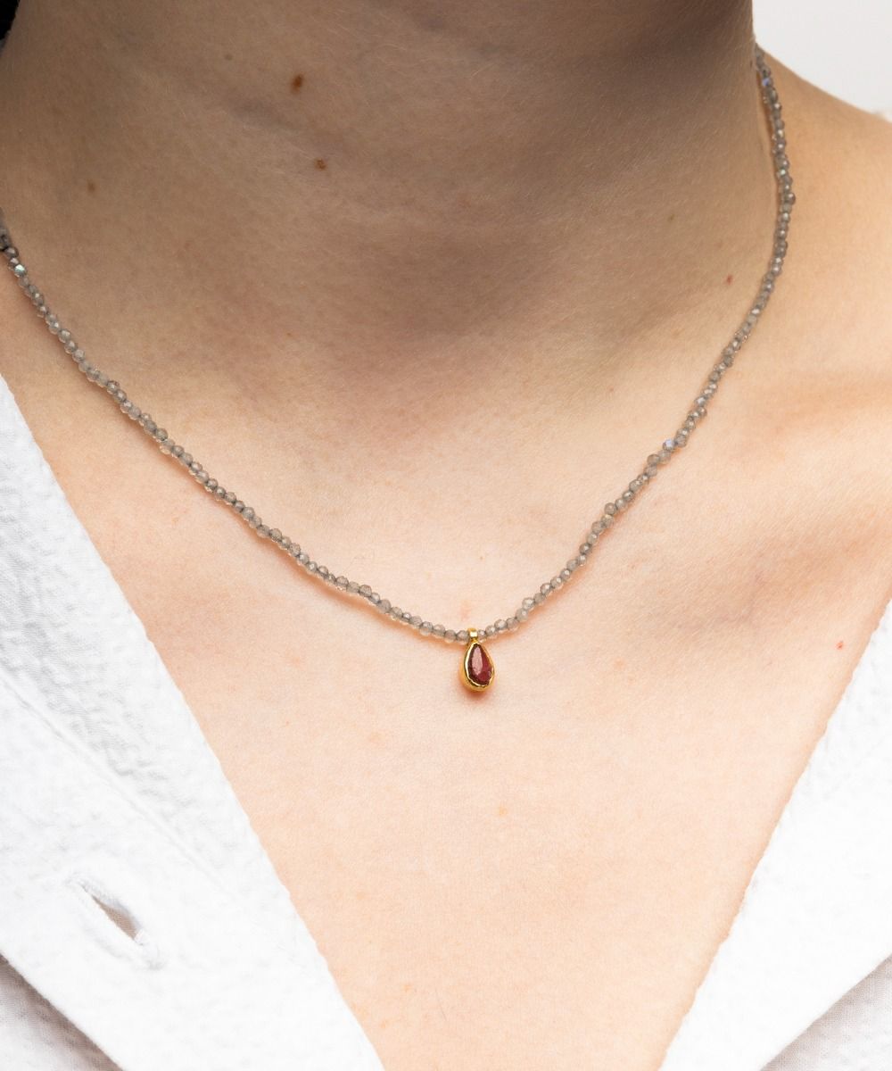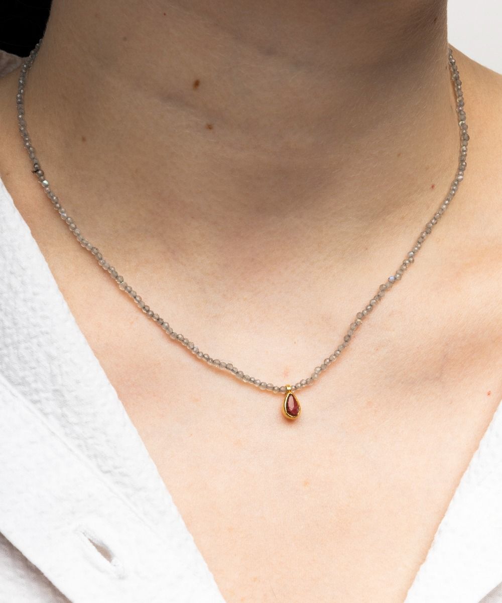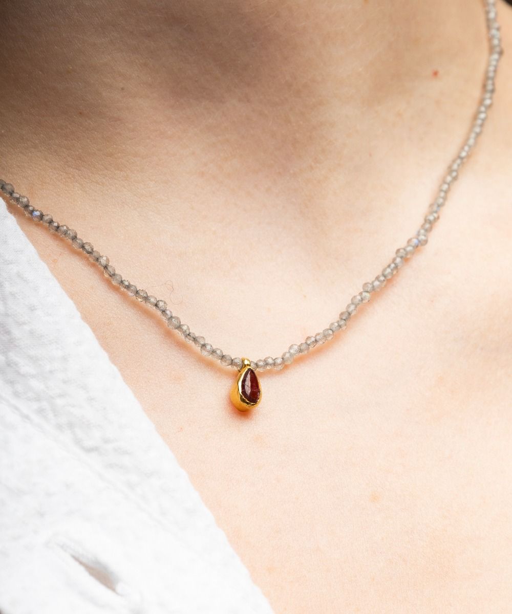 Delicate and feminine, a complement with an ethnic touch that will finish off any look, both in summer and winter. This exclusive Guanábana design features a pendant that includes a semi-precious stone, giving the necklace an elegant touch. Our tip: you can combine necklaces of different lengths to create your own outfit. Our tip: you can combine necklaces of different lengths to create your own outfit.