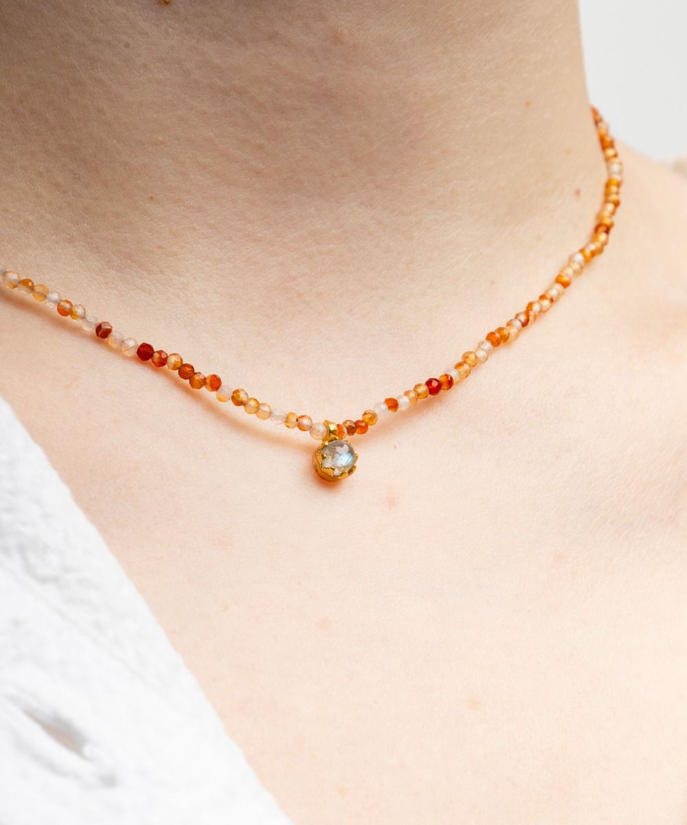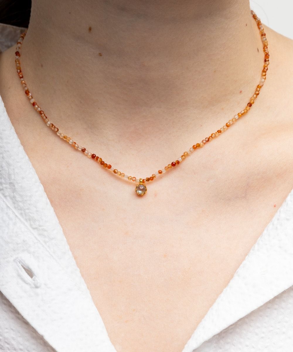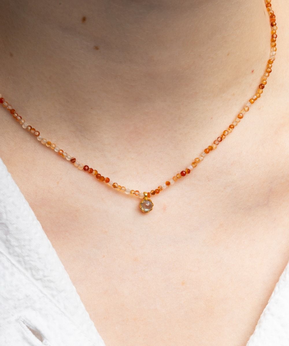 Delicate and feminine, a complement with an ethnic touch that will finish off any look, both in summer and winter. This exclusive Guanábana design features a pendant that includes a semi-precious stone, giving the necklace an elegant touch. Our tip: you can combine necklaces of different lengths to create your own outfit. Our tip: you can combine necklaces of different lengths to create your own outfit.