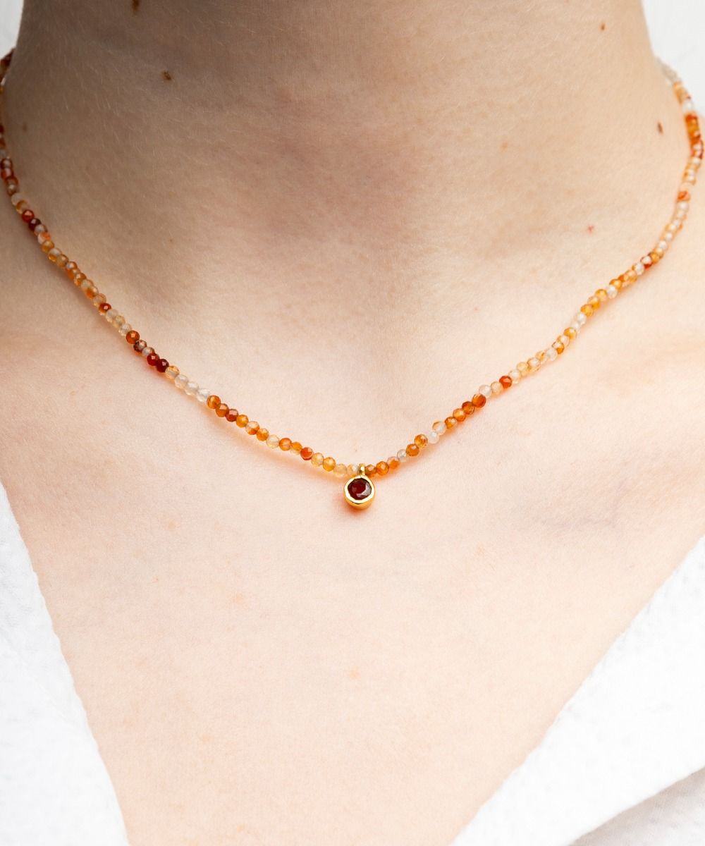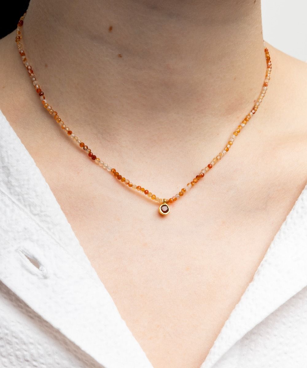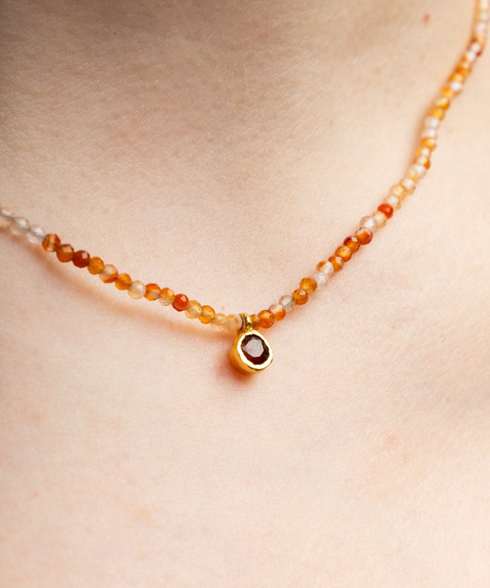 Delicate and feminine, a complement with an ethnic touch that will finish off any look, both in summer and winter. This exclusive Guanábana design features a pendant that includes a semi-precious stone, giving the necklace an elegant touch. Our tip: you can combine necklaces of different lengths to create your own outfit. Our tip: you can combine necklaces of different lengths to create your own outfit.