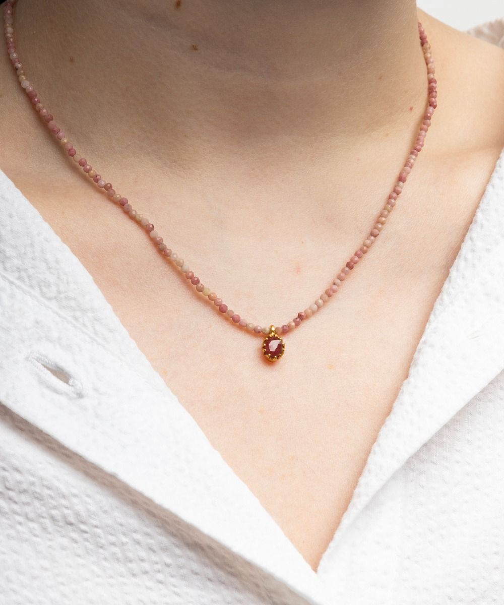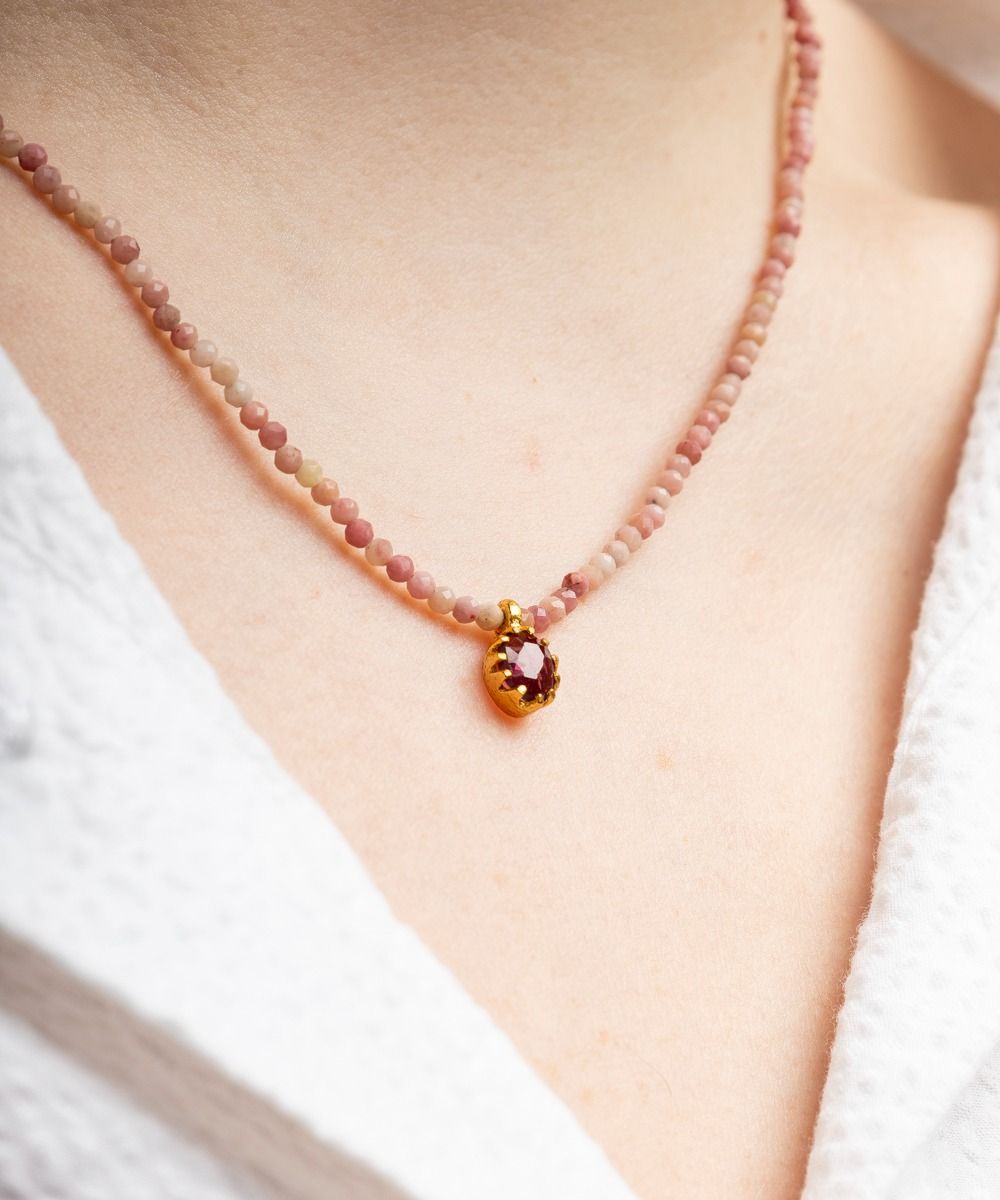 Delicate and feminine, a complement with an ethnic touch that will finish off any look, both in summer and winter. This exclusive Guanábana design features a pendant that includes a semi-precious stone, giving the necklace an elegant touch. Our tip: you can combine necklaces of different lengths to create your own outfit. Our tip: you can combine necklaces of different lengths to create your own outfit.