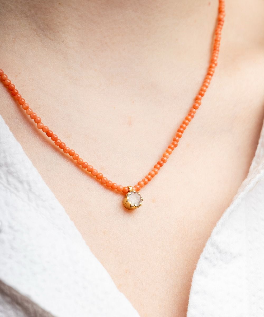 Delicate and feminine, a complement with an ethnic touch that will finish off any look, both in summer and winter. This exclusive Guanábana design features a pendant that includes a semi-precious stone, giving the necklace an elegant touch. Our tip: you can combine necklaces of different lengths to create your own outfit. Our tip: you can combine necklaces of different lengths to create your own outfit.