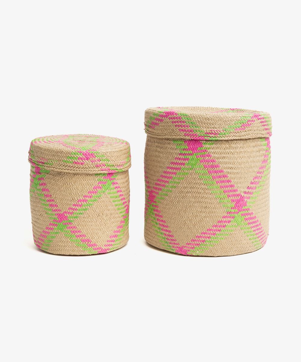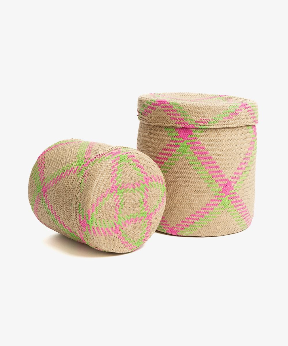 Nuestros complementos para casa están hechos a mano por artesanas utilizando la técnica de tejido en iraca, típica de la tradición colombiana. La iraca, o paja toquilla, es una fibra natural que proviene de la “Carludovica palmata”, de cuyas hojas se obtienen unos finos hilos que son teñidos para darles color. Una vez secos, los artesanos entretejen los hilos con los diferentes colores para crear nuestros contenedores. Los puedes colocar en cualquier parte de tu casa, puedes guardar cualquier cosa que quieras. Utilízalo en tu baño, en el salón, dormitorio, dormitorio infantil, etc. Para la limpieza se aconseja utilizar un paño húmedo. No es lavable.