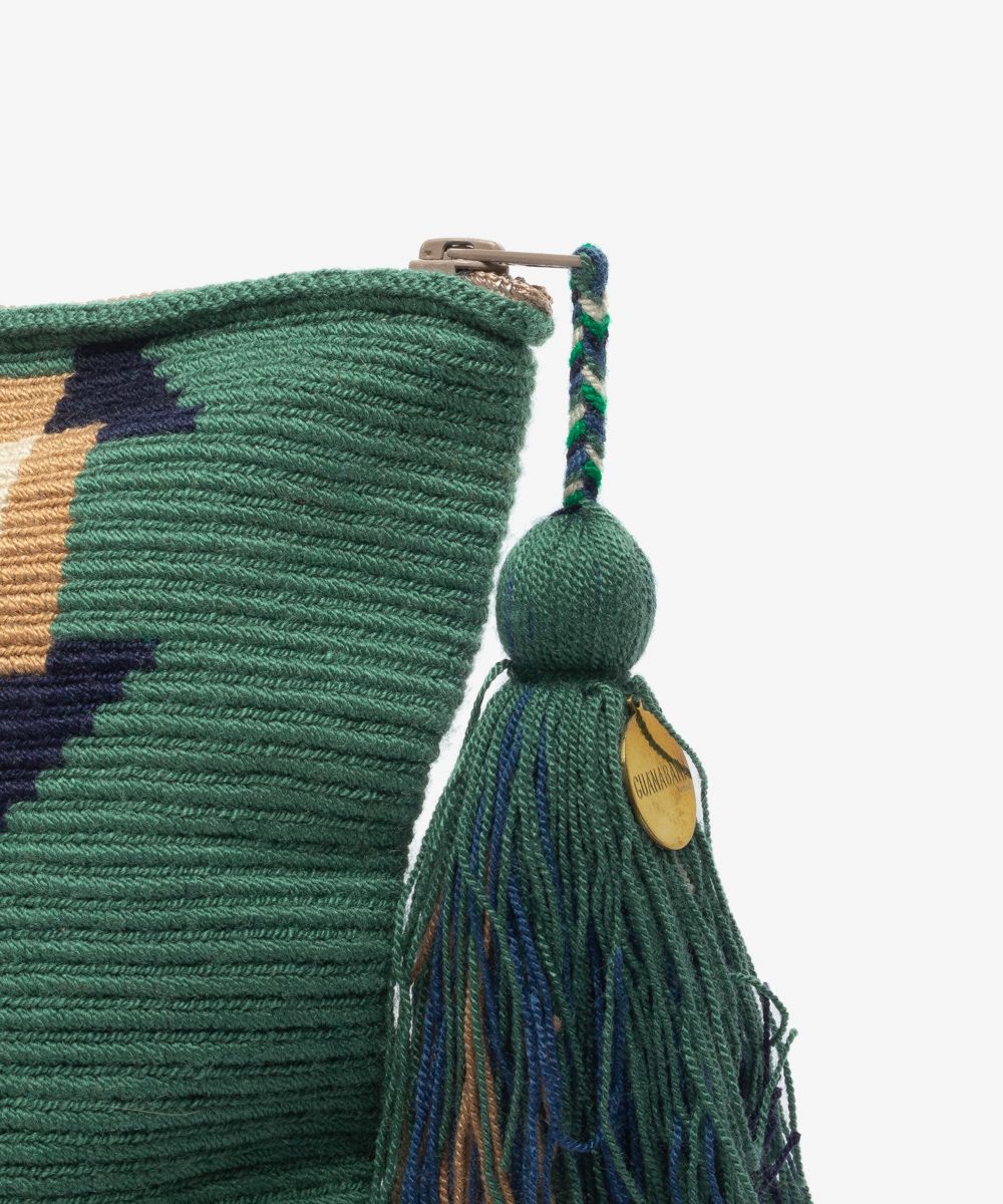 GUANABANA se reinventa el bolso de mano tradicional y lo convierte en el lo-quiero-tener-ya de tu armario. Es el modelo que más desafíos ha representado, y por lo tanto uno de los que más nos enorgullece, porque las artesanas Wayuu en Colombia nunca habían tejido modelos cuadrados. Alucinante y provocador, este bolso de mano abrió un nuevo universo de posibilidades a las artesanas que se atrevieron a cambiar y a crear esta pieza única en su género. Este bolso cierra con dos pompones tejidos y nuestro sello en bronce con el leitmotiv de GUANABANA: BE POSITIVE.