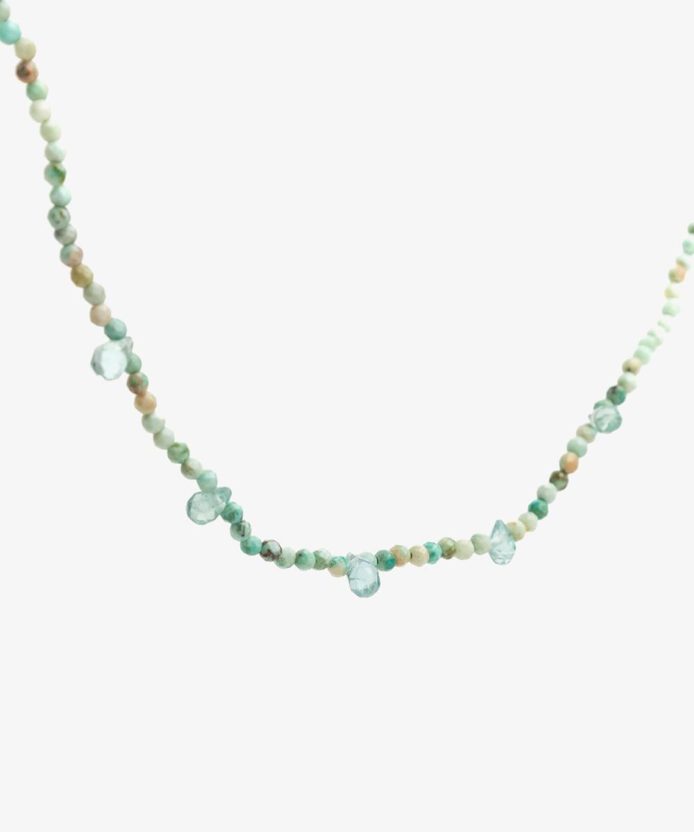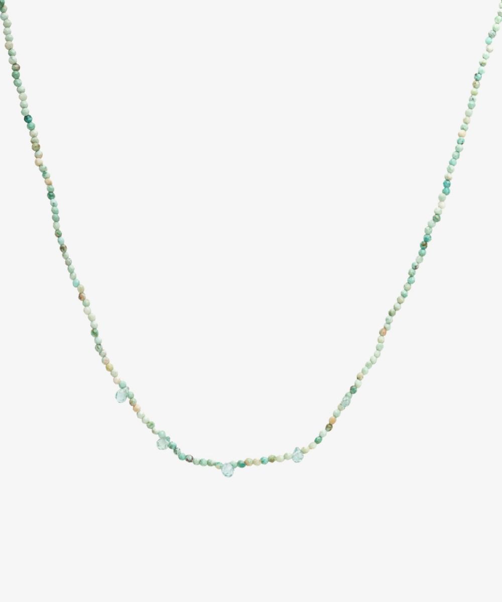 Delicado y femenino, un complemento con un toque étnico que rematará cualquier look, tanto en verano como en invierno. Este diseño exclusivo de Guanábana tiene 5 gotas de piedras semipreciosas, dando un toque moderno y diferente al collar. Nuestro consejo: puedes combinar collares de diferentes largos para crear tu propio atuendo. Nuestro consejo: puedes combinar collares de diferentes largos para crear tu propio atuendo.
