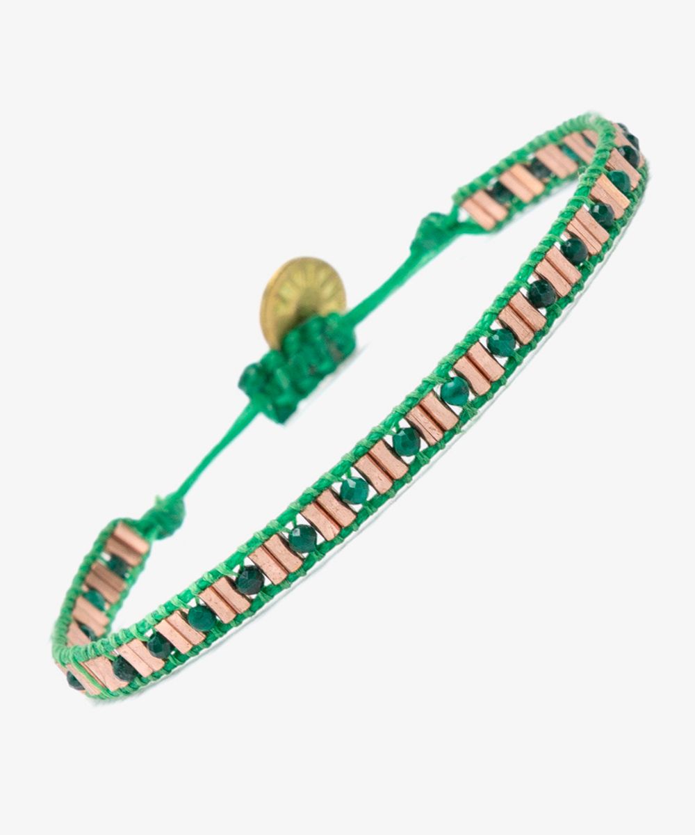 Guanábana presenta su nueva colección de pulseras y las convierte en un accesorio brillante y colorido, con cuentas de piedras semipreciosas que aportan sofisticación a la pulsera. La pulsera SAN LORENZO está tejida a mano por artesanas colombianas usando un telar manual y acabada con un cierre ajustable y una medallita en bronce con nuestro mantra para que no lo olvides: BE POSITIVE.