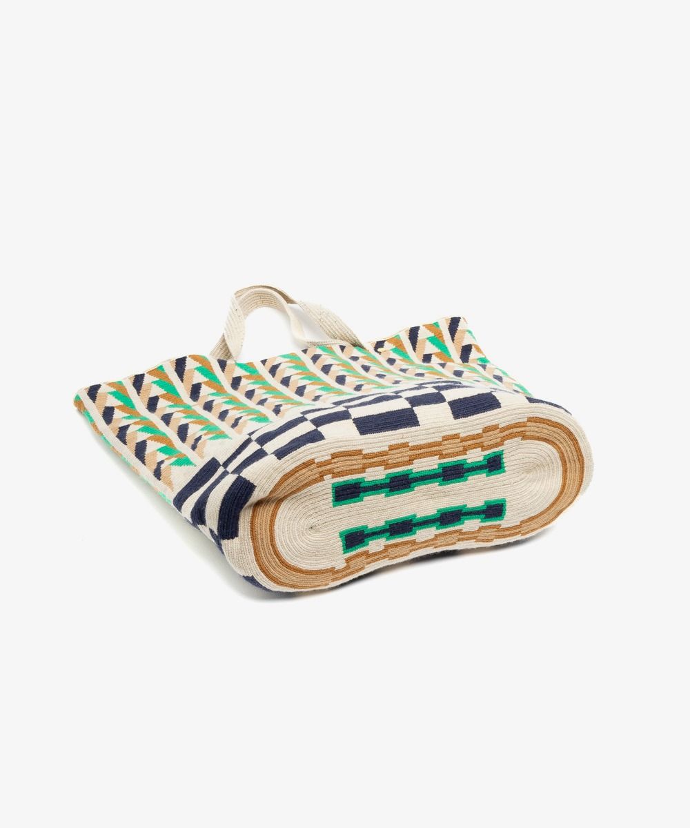 Siempre buscando la innovación, Guanábana combina la tradición del tejido a mano con la vida urbana a través de este bolso, diseñado en Madrid y tejido a ganchillo a mano en Colombia. Este modelo surgió como una revolución entre los artesanos Wayuu, quienes están acostumbrados a trabajar con bolsos de base redonda. Terminado con una etiqueta de bronce con nuestro mantra para que no lo olvides: SEA POSITIVO. Este bolso está diseñado exclusivamente por Guanábana.