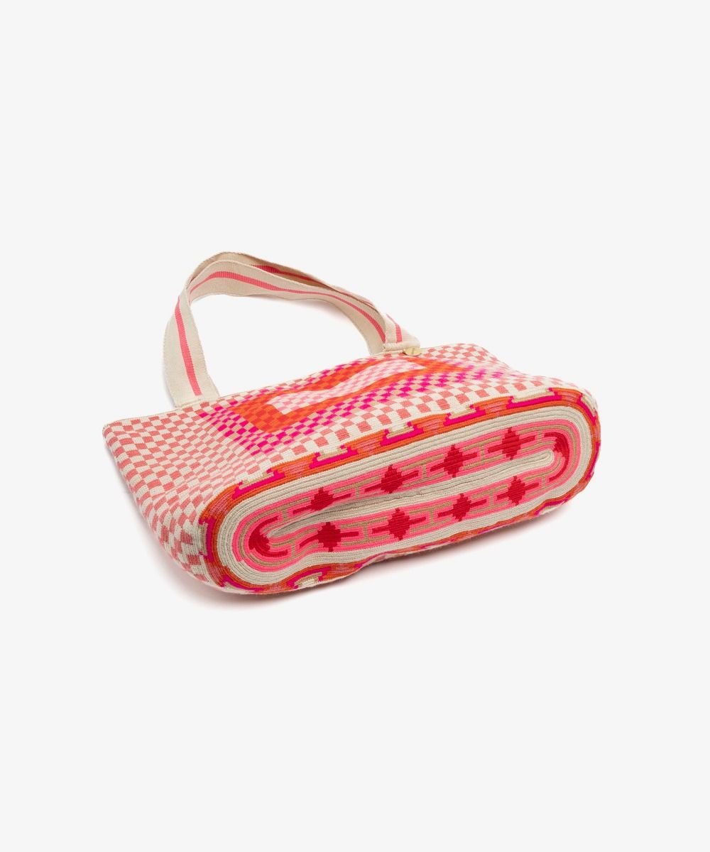Diseñado exclusivamente por GUANABANA, este modelo representa el primer gran salto de la comunidad Wayuu en Colombia para atreverse a cambiar el modelo de la mochila original. El resultado es este sorprendente y funcional bolso cuya asa está tejida en un tamaño particular para ser llevado a mano o colgado en el hombro. Todos los bolsos llevan nuestro característico sello en bronce con el leitmotiv de GUANABANA: BE POSITIVE.