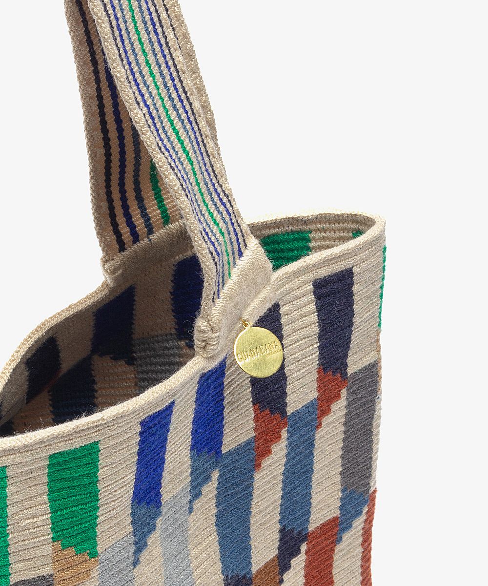 Diseñado exclusivamente por GUANABANA, este modelo representa el primer gran salto de la comunidad Wayuu en Colombia para atreverse a cambiar el modelo de la mochila original. El resultado es este sorprendente y funcional bolso cuya asa está tejida en un tamaño particular para ser llevado a mano o colgado en el hombro. Todos los bolsos llevan nuestro característico sello en bronce con el leitmotiv de GUANABANA: BE POSITIVE.