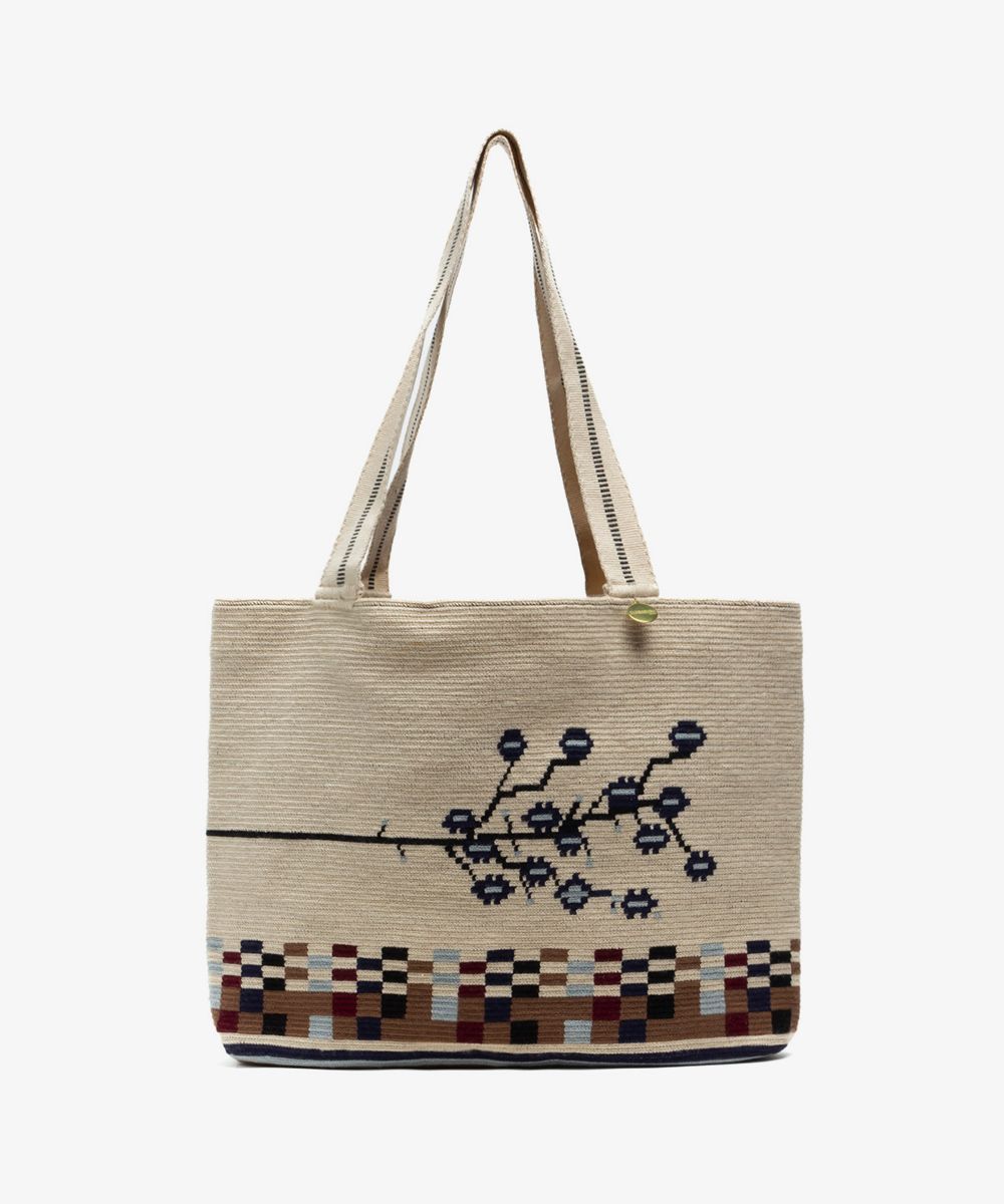 Diseñado exclusivamente por GUANABANA, este modelo representa el primer gran salto de la comunidad Wayuu en Colombia para atreverse a cambiar el modelo de la mochila original. El resultado es este sorprendente y funcional bolso cuya asa está tejida en un tamaño particular para ser llevado a mano o colgado en el hombro. Todos los bolsos llevan nuestro característico sello en bronce con el leitmotiv de GUANABANA: BE POSITIVE.