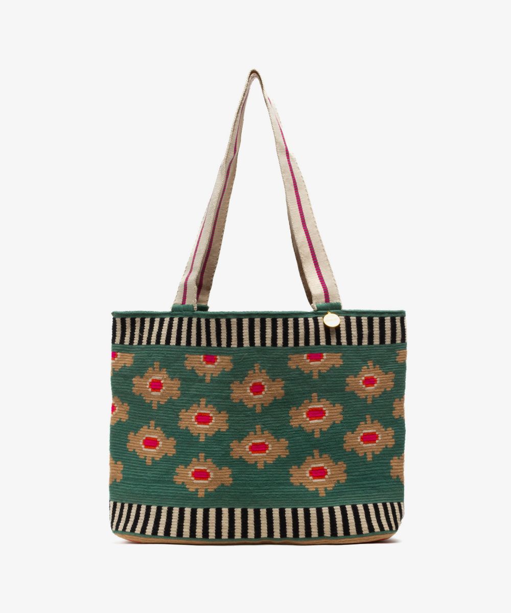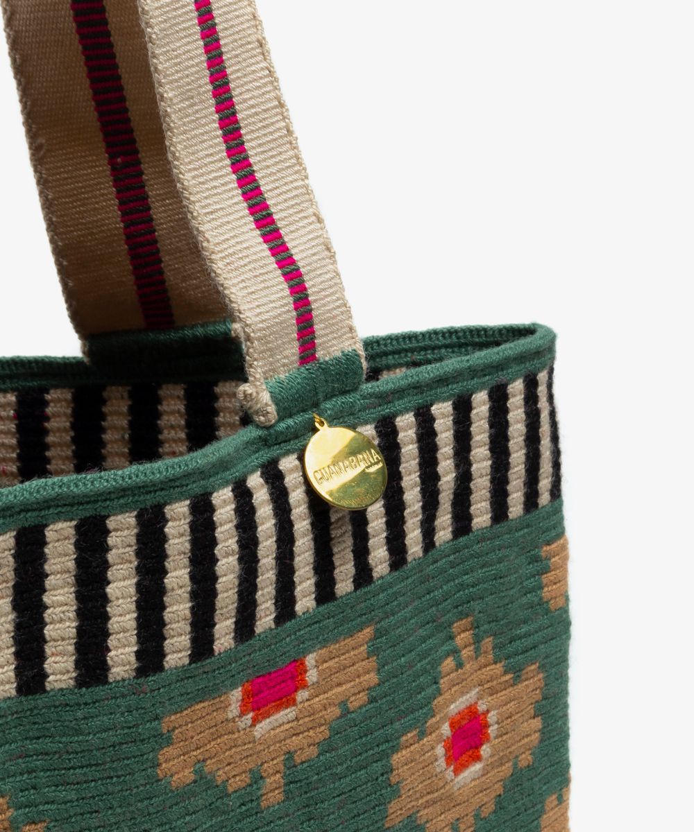 Diseñado exclusivamente por GUANABANA, este modelo representa el primer gran salto de la comunidad Wayuu en Colombia para atreverse a cambiar el modelo de la mochila original. El resultado es este sorprendente y funcional bolso cuya asa está tejida en un tamaño particular para ser llevado a mano o colgado en el hombro. Todos los bolsos llevan nuestro característico sello en bronce con el leitmotiv de GUANABANA: BE POSITIVE.