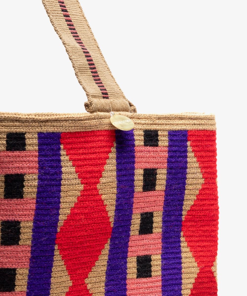 Diseñado exclusivamente por GUANABANA, este modelo representa el primer gran salto de la comunidad Wayuu en Colombia para atreverse a cambiar el modelo de la mochila original. El resultado es este sorprendente y funcional bolso cuya asa está tejida en un tamaño particular para ser llevado a mano o colgado en el hombro. Todos los bolsos llevan nuestro característico sello en bronce con el leitmotiv de GUANABANA: BE POSITIVE.