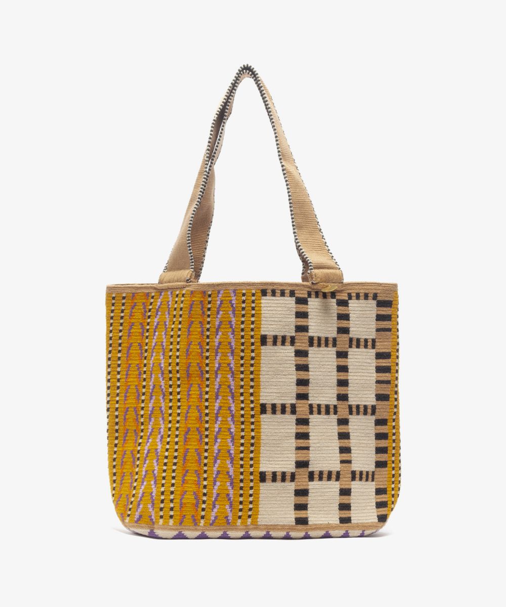 Diseñado exclusivamente por GUANABANA, este modelo representa el primer gran salto de la comunidad Wayuu en Colombia para atreverse a cambiar el modelo de la mochila original. El resultado es este sorprendente y funcional bolso cuya asa está tejida en un tamaño particular para ser llevado a mano o colgado en el hombro. Todos los bolsos llevan nuestro característico sello en bronce con el leitmotiv de GUANABANA: BE POSITIVE.