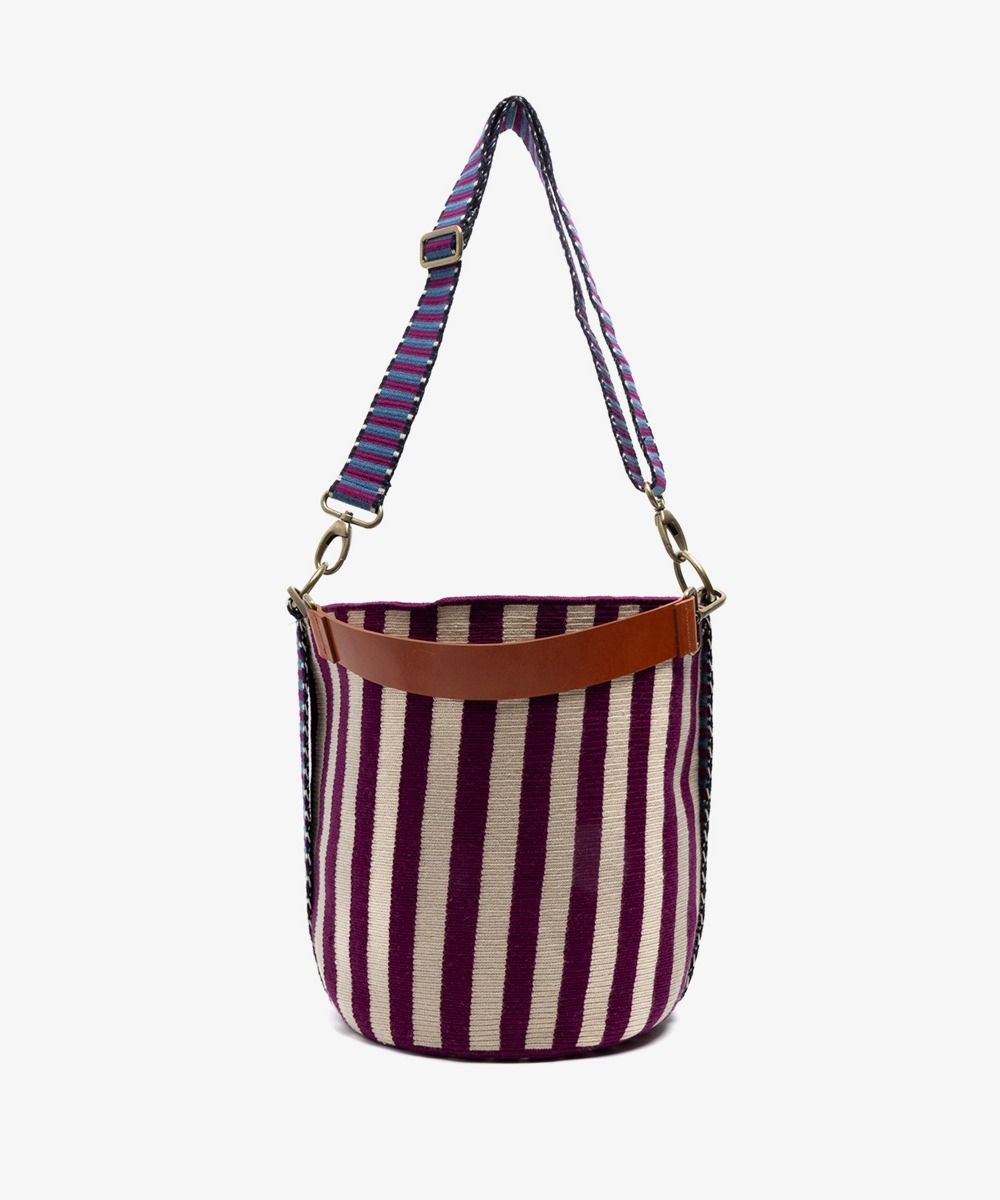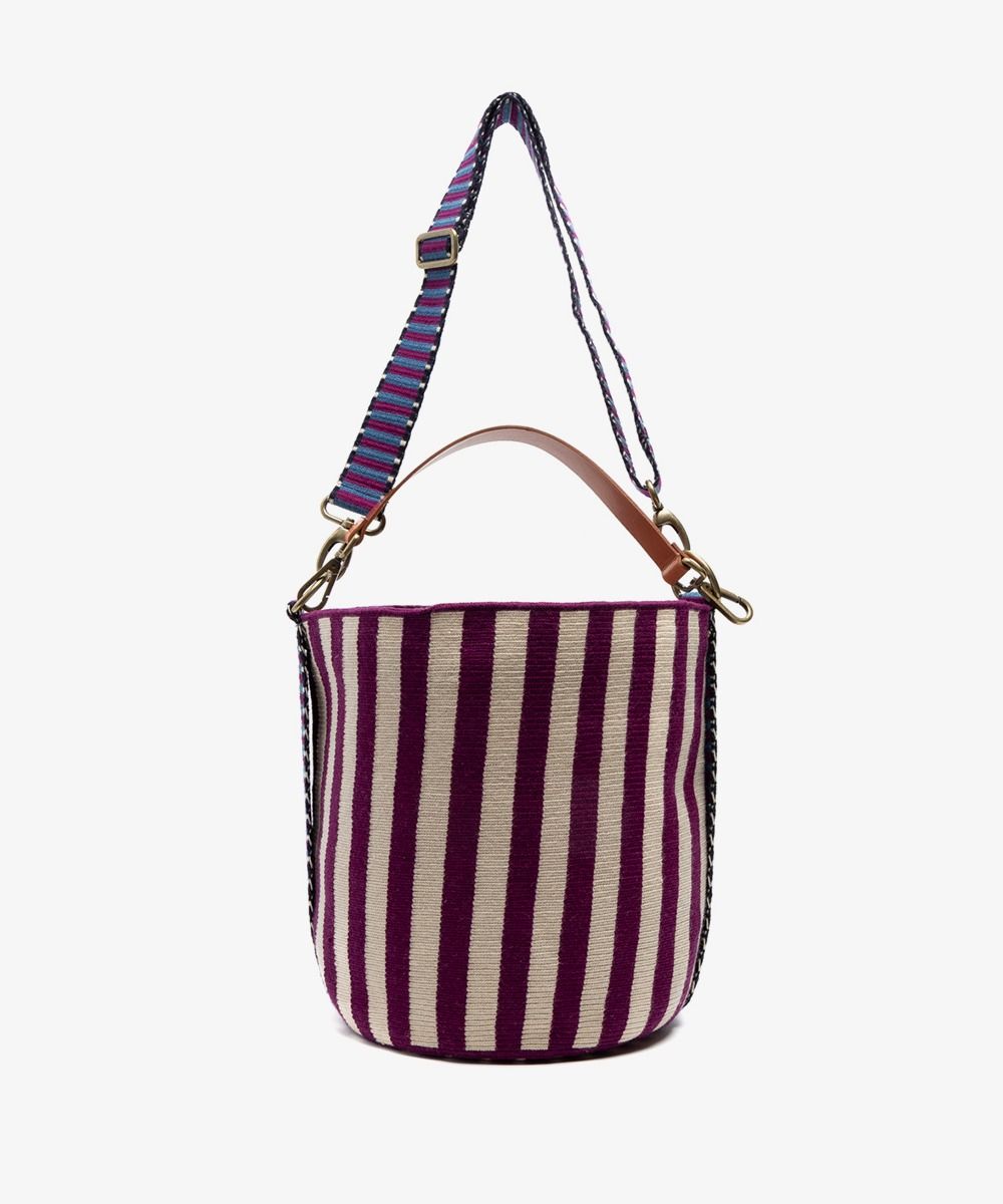 Diseñado en Madrid 100% hecho a mano por mujeres en Colombia. Guanábana abraza pequeñas diferencias: los tamaños o diseños pueden variar respecto a la imagen. Lavado: a máquina en agua fría, sin las asas. Material: 80% acrílico, 15% cuero y 5% metal Dimensiones aproximadas: Altura: 27 cm (10,6 pulgadas) Diámetro: 27 cm (10,6 pulgadas) Asa ajustable: 65 cm hasta 110 cm (25,6 – 43,3 pulgadas) Asa de cuero 100% vacuno: 40 cm de largo (15,7 pulgadas), 3,5 mm de ancho (0,14 pulgadas)