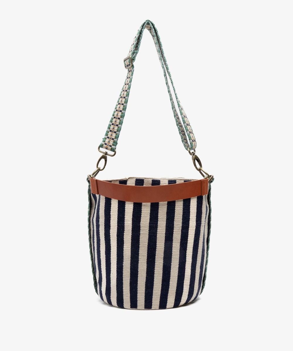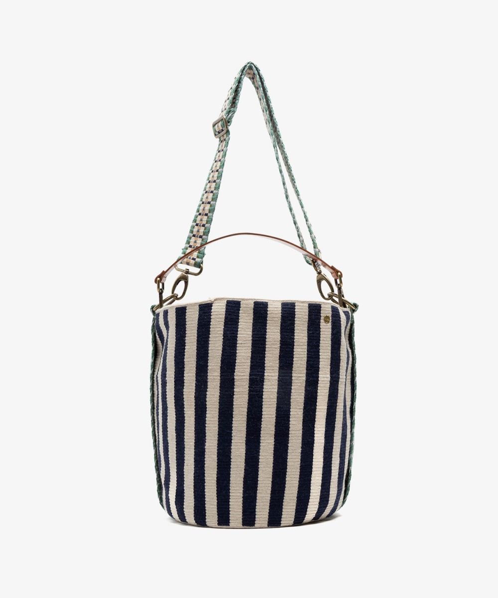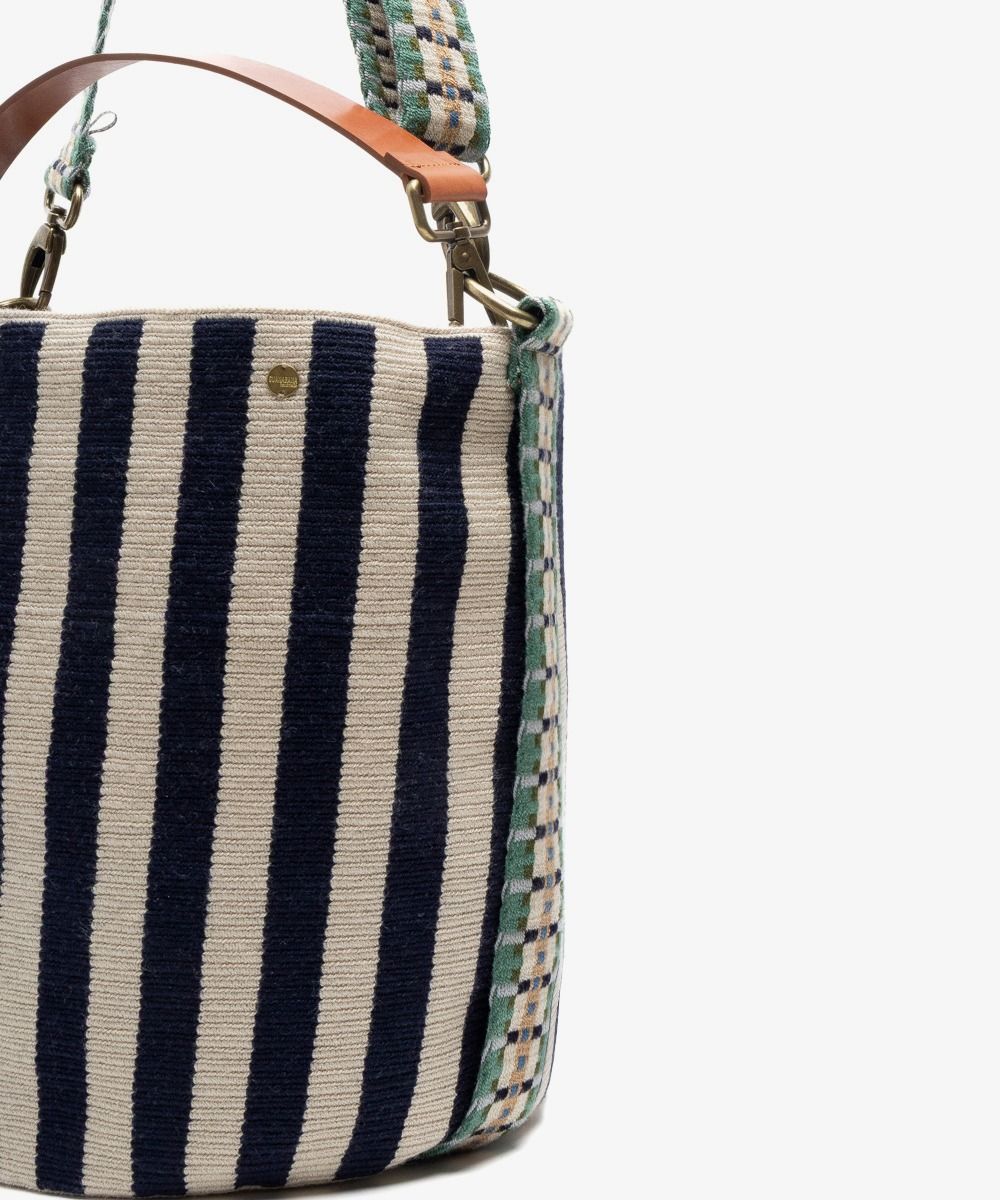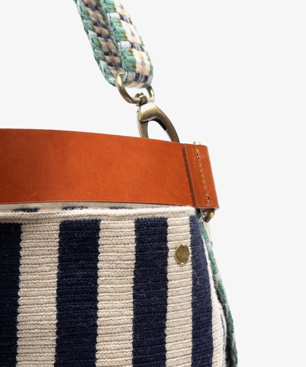 Diseñado en Madrid 100% hecho a mano por mujeres en Colombia. Guanábana abraza pequeñas diferencias: los tamaños o diseños pueden variar respecto a la imagen. Lavado: a máquina en agua fría, sin las asas. Material: 80% acrílico, 15% cuero y 5% metal Dimensiones aproximadas: Altura: 27 cm (10,6 pulgadas) Diámetro: 27 cm (10,6 pulgadas) Asa ajustable: 65 cm hasta 110 cm (25,6 – 43,3 pulgadas) Asa de cuero 100% vacuno: 40 cm de largo (15,7 pulgadas), 3,5 mm de ancho (0,14 pulgadas)