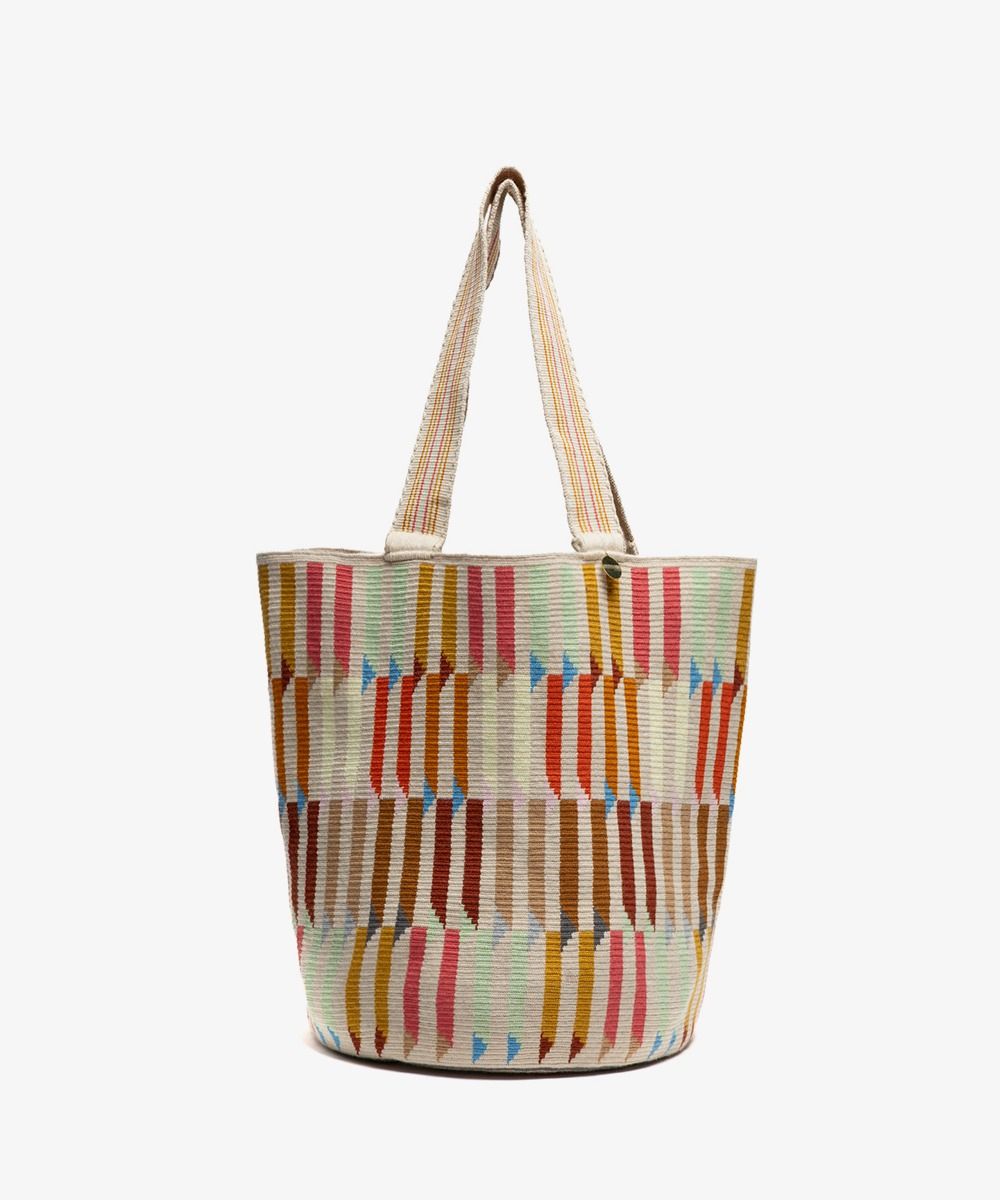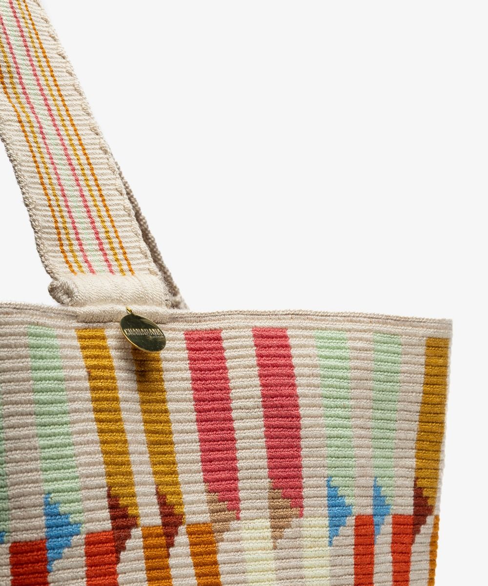 Guanábana reinventa el clásico tote bag y le da un toque boho-chic con sus diseños geométricos y vibrantes, creados en Madrid y hechos a mano por las Wayuu en Colombia. La puntada de este modelo, tejido en crochet, es más suelta para hacerlo más ligero y fácil de llevar. Tiene un asa tipo banda para llevarlo al hombro, por lo que es ideal para el trabajo, la universidad o incluso la playa. Acabado con una medallita de bronce con nuestro mantra para que no lo olvides: BE POSITIVE. Este bolso es un diseño exclusivo de Guanábana.