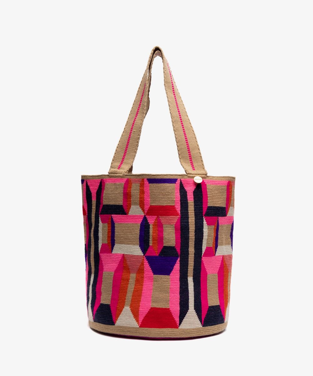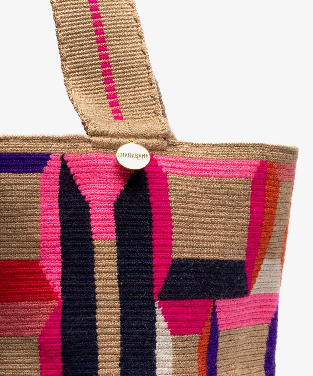 Guanábana reinventa el clásico tote bag y le da un toque boho-chic con sus diseños geométricos y vibrantes, creados en Madrid y hechos a mano por las Wayuu en Colombia. La puntada de este modelo, tejido en crochet, es más suelta para hacerlo más ligero y fácil de llevar. Tiene un asa tipo banda para llevarlo al hombro, por lo que es ideal para el trabajo, la universidad o incluso la playa. Acabado con una medallita de bronce con nuestro mantra para que no lo olvides: BE POSITIVE. Este bolso es un diseño exclusivo de Guanábana.