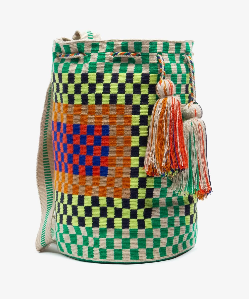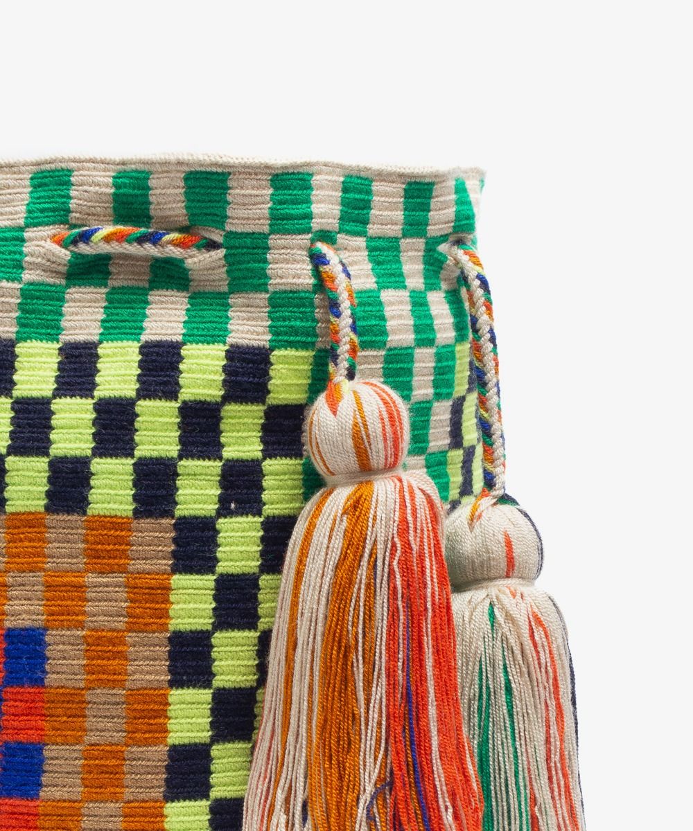 Tula es el nombre que se le da en Colombia a las mochilas y GUANABANA lo adopta para este modelo diseñado en Madrid y tejido por artesanas Wayuu en Colombia. Nuestro equipo enriquece la mochila original y la convierte en un bolso extraordinario para aquellas personas que se atreven a cruzar fronteras, romper moldes y tener una vida llena de espacio y colorido. Este modelo, exclusivo de GUANABANA, cierra con dos pompones y nuestro sello en bronce con el leitmotiv: BE POSITIVE.