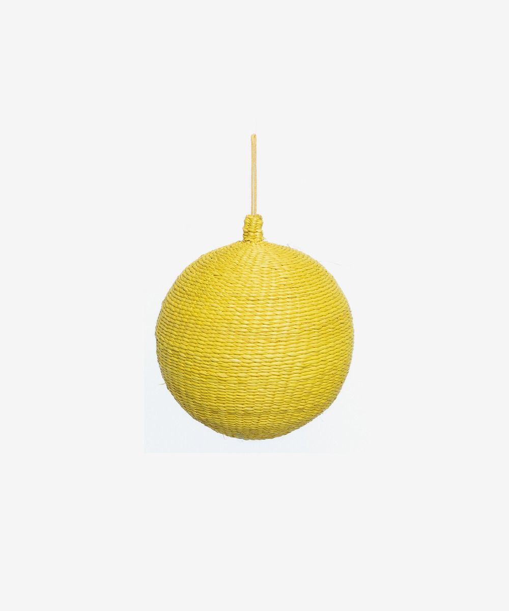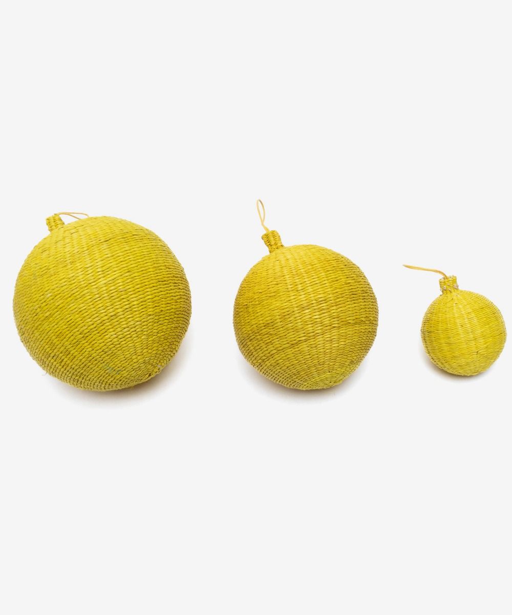 Nuestros ornamentos, bolas de Navidad, están hechas a mano por artesanas utilizando la técnica de tejido en iraca, típica de la tradición colombiana. La iraca, o paja toquilla, es una fibra natural que proviene de la “Carludovica palmata”, de cuyas hojas se obtienen unos finos hilos que son teñidos para darles color. Una vez secos, los artesanos entretejen los hilos con los diferentes colores para crear estas bolas de navidad.