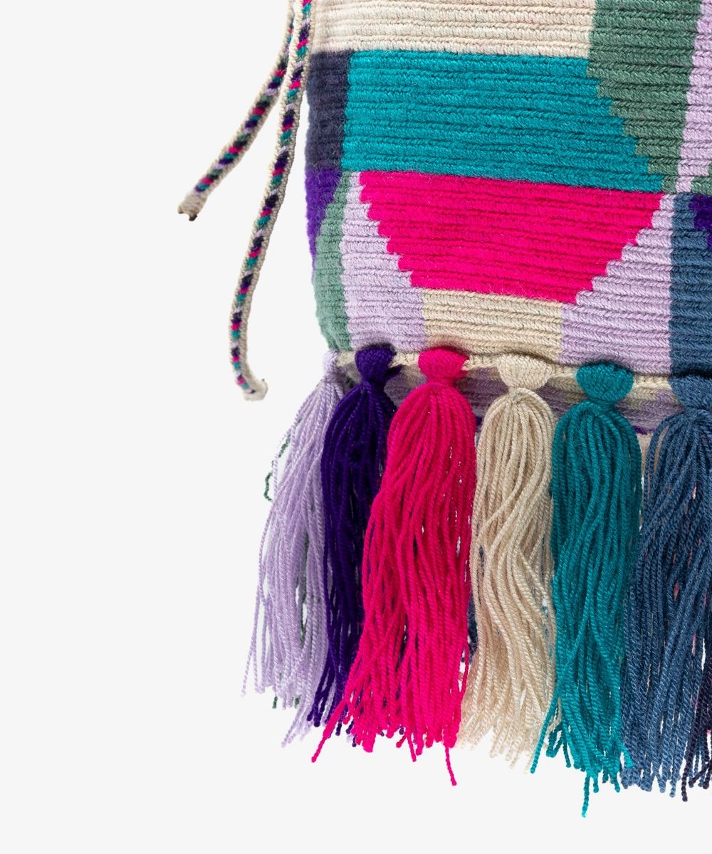El equipo de diseñadores de GUANABANA en Madrid es consciente de los retos que conllevan los productos hechos a mano. Especialmente, cuando se trata de introducir nuevas ideas o cambios a las tradiciones ancestrales. Nuestro bolso ZOE es el resultado de años de confianza entre artesanas Wayuu en Colombia y nuestra empresa. Sus flecos y forma, únicos y sin precedentes dentro de la comunidad de tejedores, lo convierten en un bolso contemporáneo y vital. GUANABANA reinventa su clásico bolso cruzado L acortando su asa y añadiendo dos pompones irresistibles a sus lados. Este modelo, consistente con el original, tiene un punto delicado y muy resistente que permite a las artesanas Wayúu en Colombia tejer diseños y patrones con excepcional calidad. Revisa sus bases, no hay dos iguales! Todos los bolsos llevan nuestro característico sello en bronce con el leitmotiv de GUANABANA: BE POSITIVE.